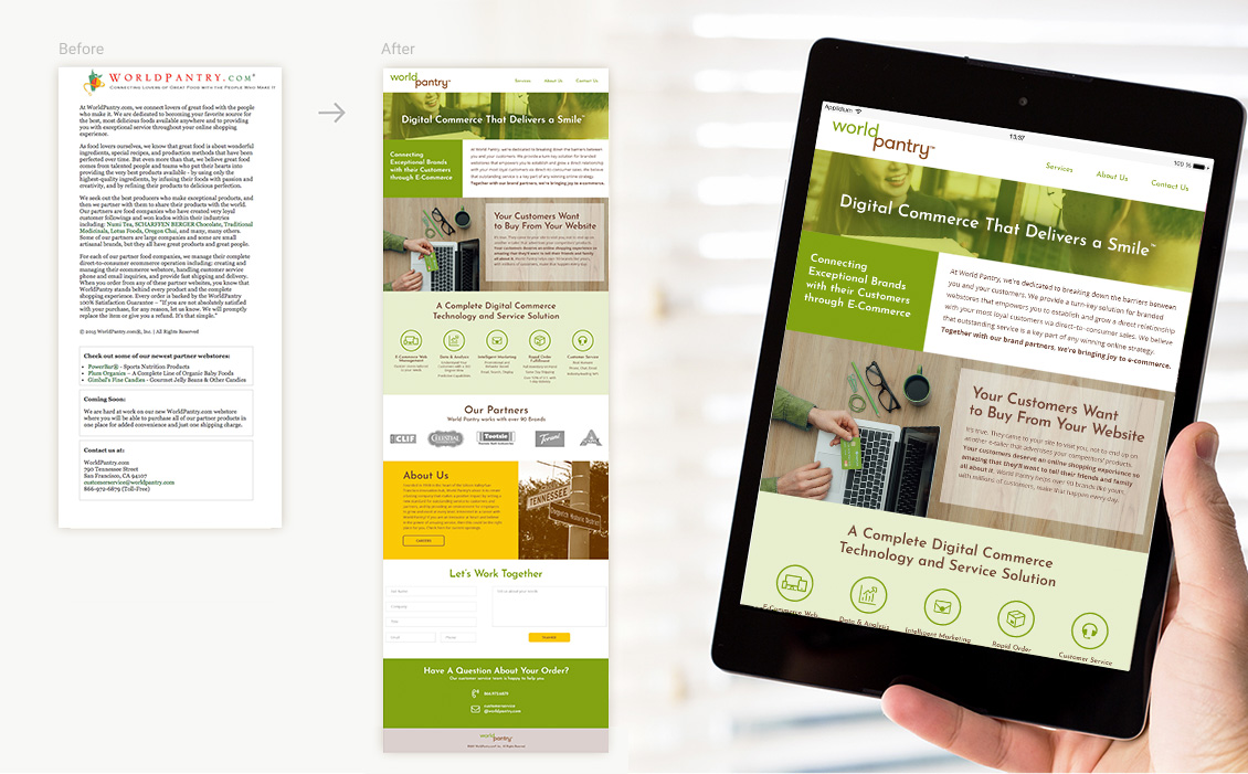 Founded in 1998 in the heart of the Silicon Valley/San Francisco innovation hub, World Pantry's vision is to create a lasting company that makes a positive impact by setting a new standard for outstanding service to customers and partners. Over the past 20 years, they have focused on providing world class service to their partners and customers, and have established themselves as a leader in direct-to-consumer, branded e-commerce. At the end of 2017, World Pantry decided it was time for the company brand to reflect their goals and achievements.